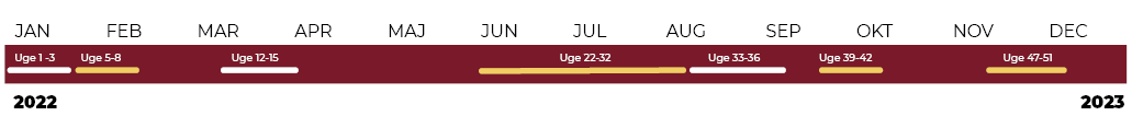 På tidslinjen ovenfor er feriesæsonerne desuden markeret. Markedsføringsindsatsen i disse perioder indgår ikke som en del af Destination Nordvestkystens nationale kampagne, men fungerer i stedet som synliggørelse af udbuddet af aktiviteter og attraktioner mens turisterne besøger destinationen i deres ferie.